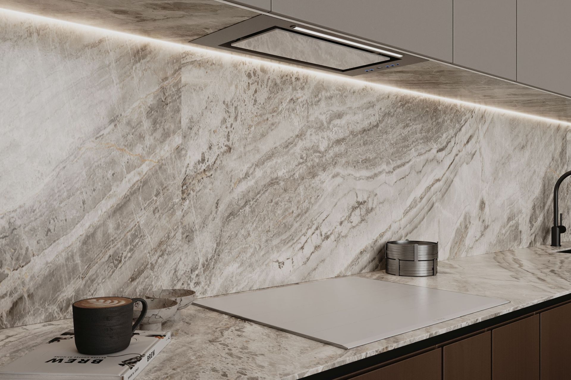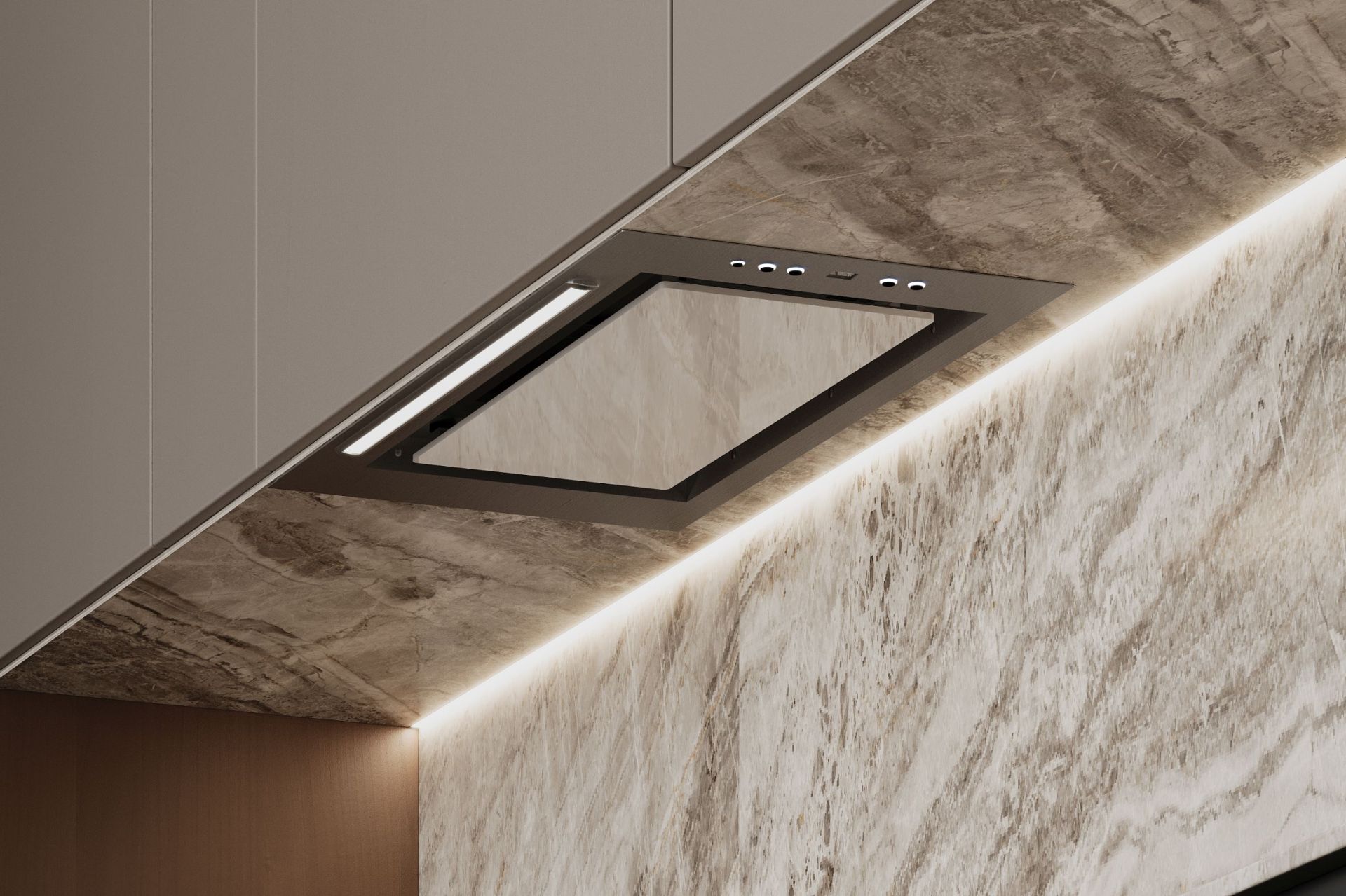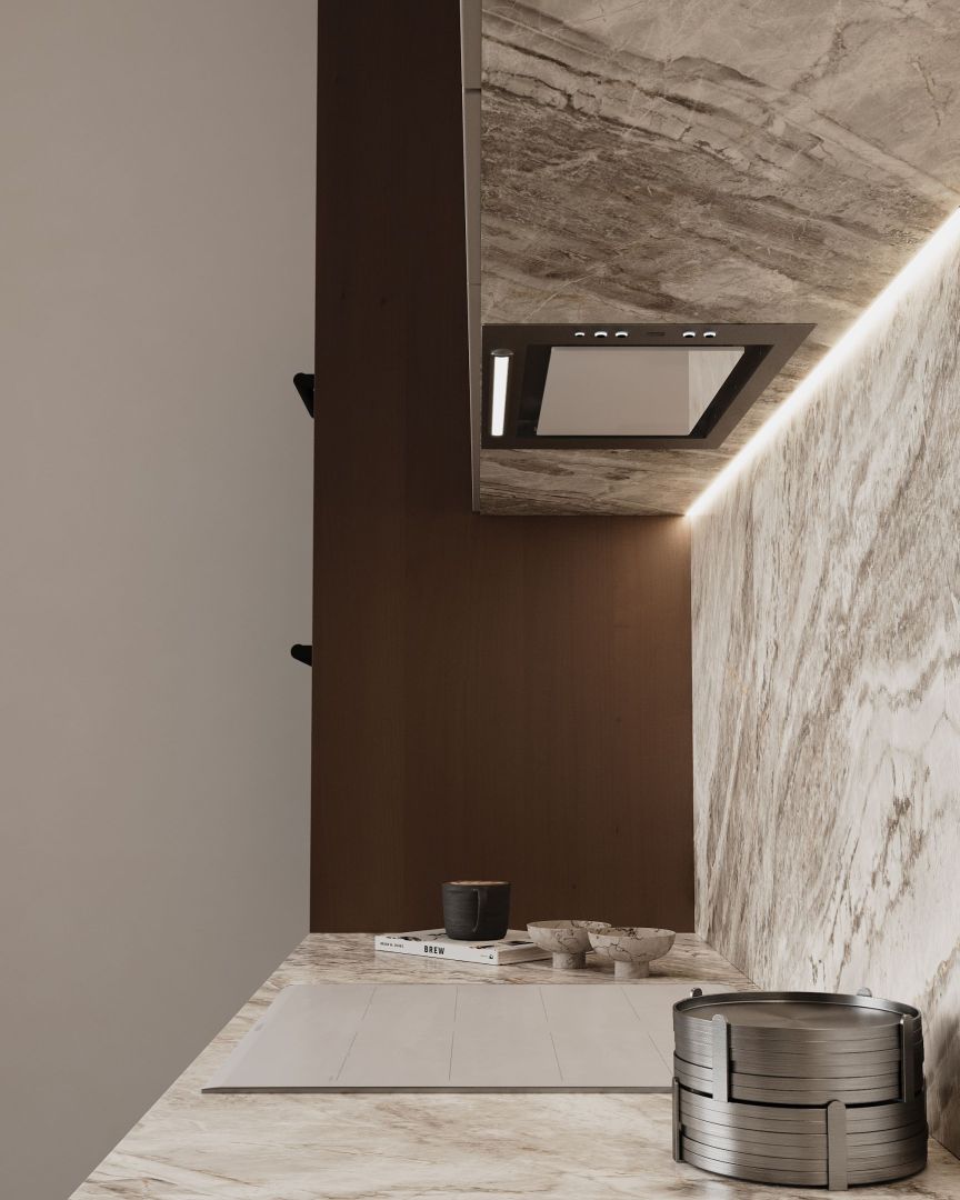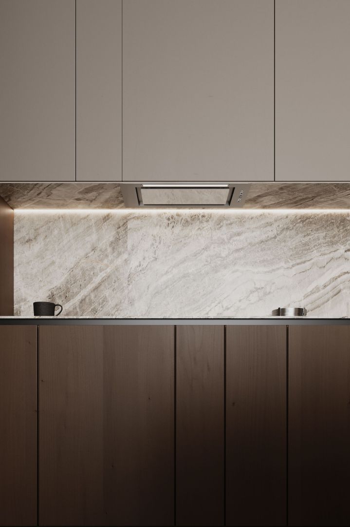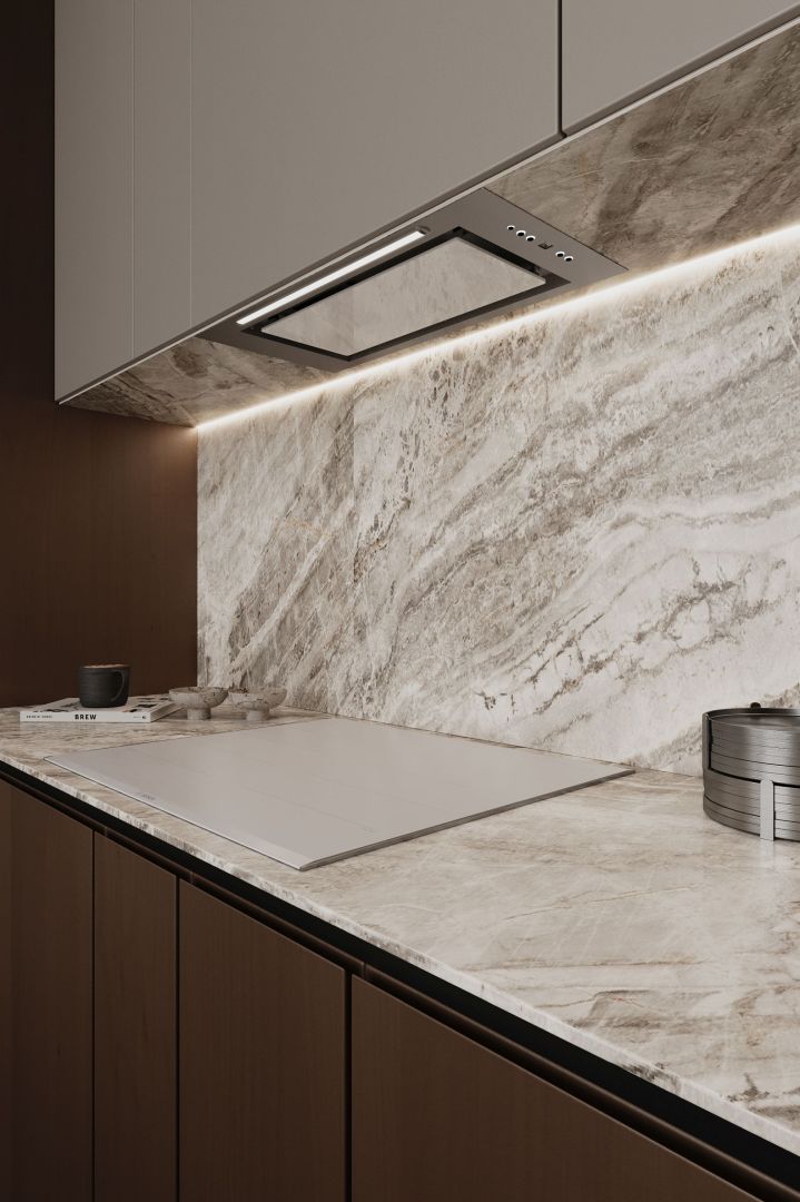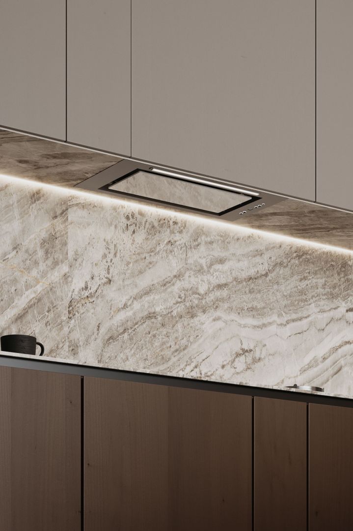 Tvaika nosūcēja izmēri lieliski iekļaujas virtuves mēbelēs, tāpēc vietu ap to var brīvi izmantot citām lietām. Atverot skapi, tiek atklāta skaista sadzīves tehnika. Viss no priekšējā paneļa līdz turbīnas korpusam ir izgatavots no nerūsējošā tērauda, estētiski vienkārši un skaisti. Tvaika nosūcēju ir ārkārtīgi viegli kopt. Viss, kas jums nepieciešams, ir mikrošķiedra ar INOX virsmas tīrīšanas līdzekli.