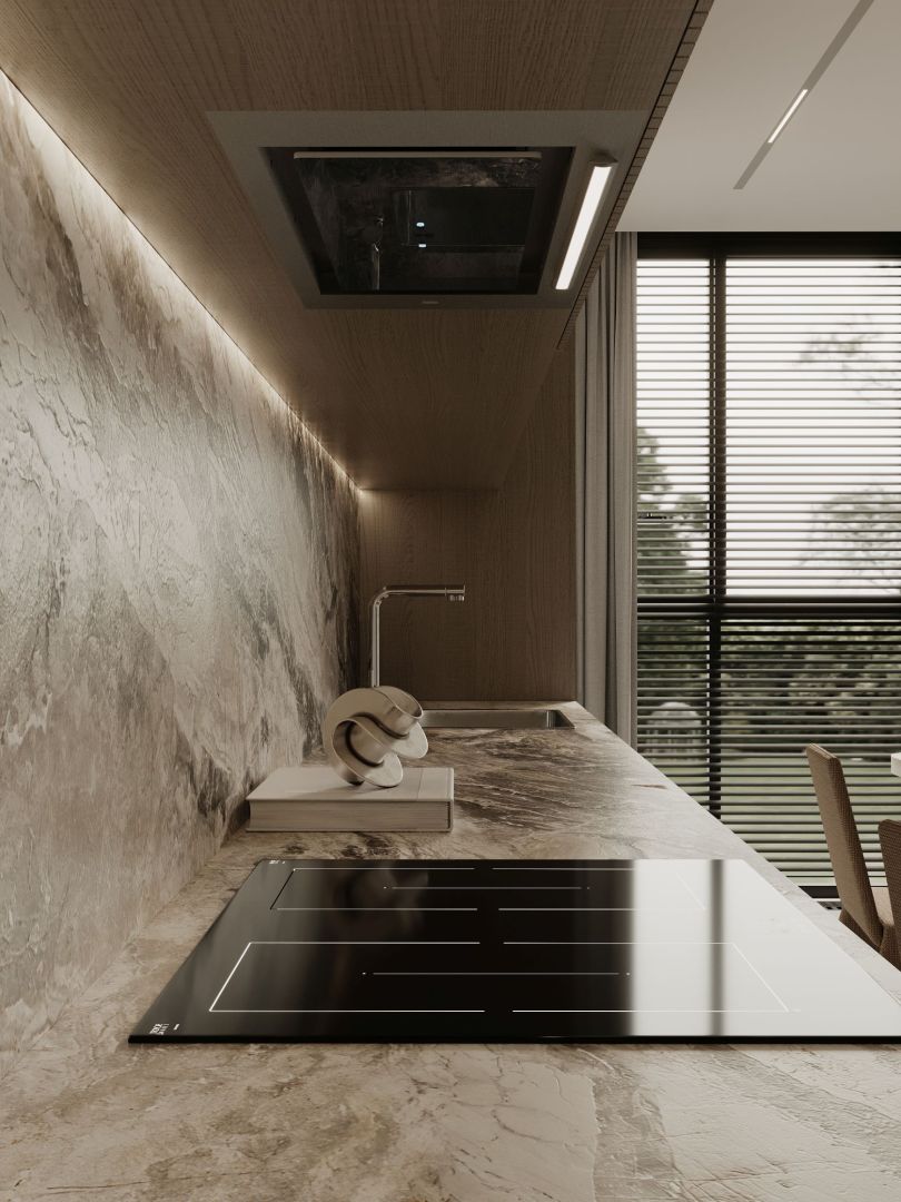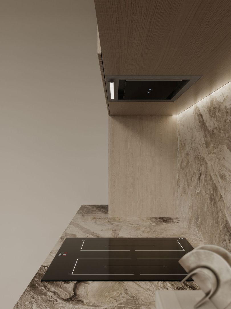 Tvaika nosūcēja izmēri lieliski iekļaujas virtuves mēbelēs, tāpēc vietu ap to var brīvi izmantot citām lietām. Atverot skapi, tiek atklāta skaista sadzīves tehnika. Viss no priekšējā paneļa līdz turbīnas korpusam ir izgatavots no nerūsējošā tērauda, estētiski vienkārši un skaisti. Tvaika nosūcēju ir ārkārtīgi viegli kopt. Viss, kas jums nepieciešams, ir mikrošķiedra ar INOX virsmas tīrīšanas līdzekli.