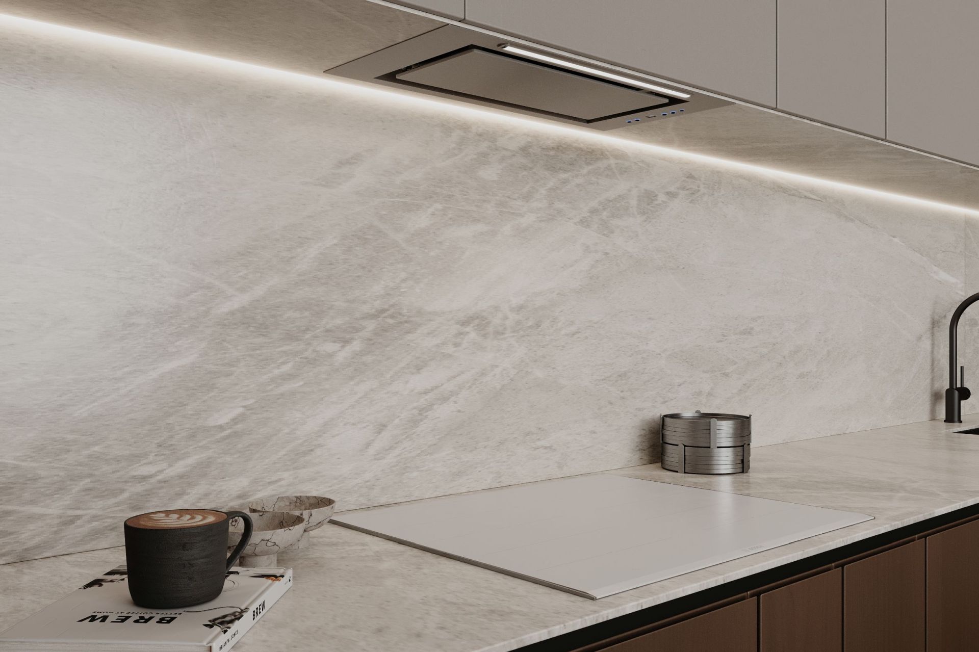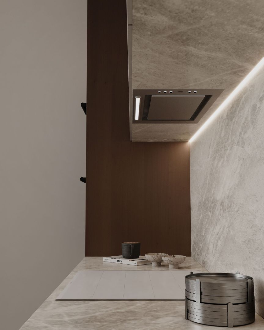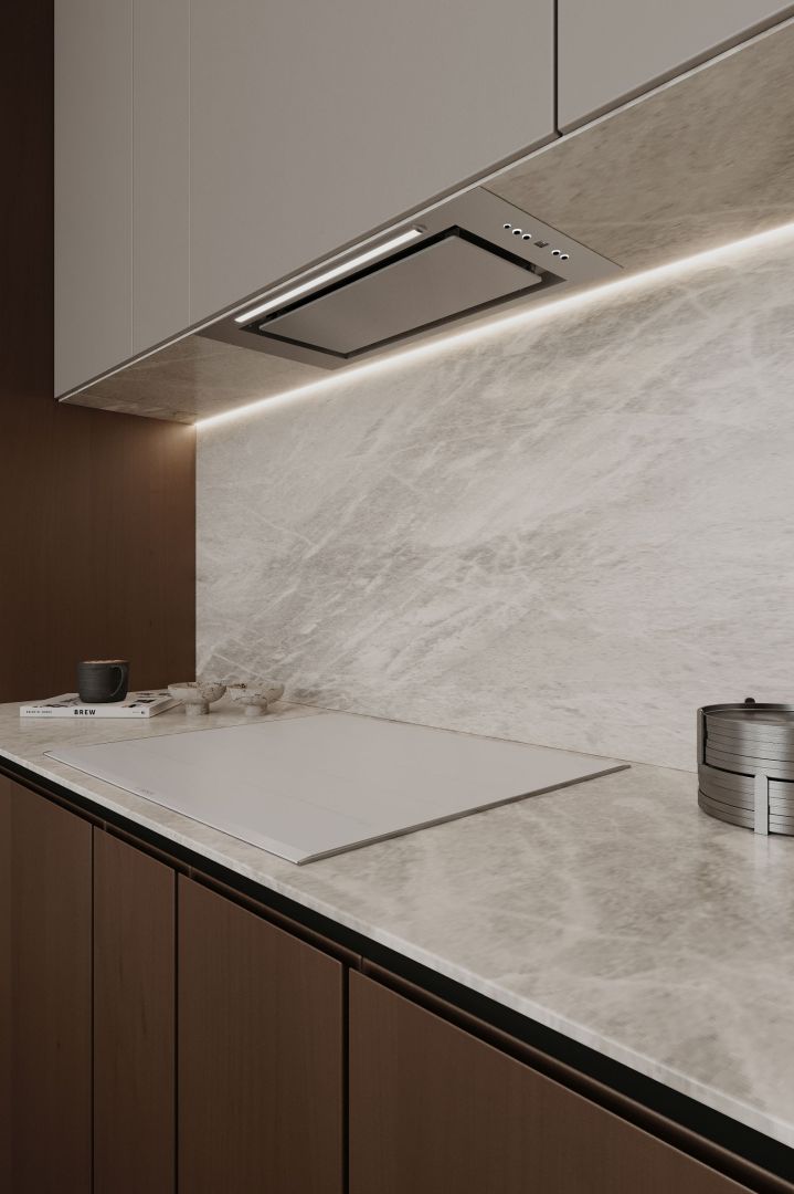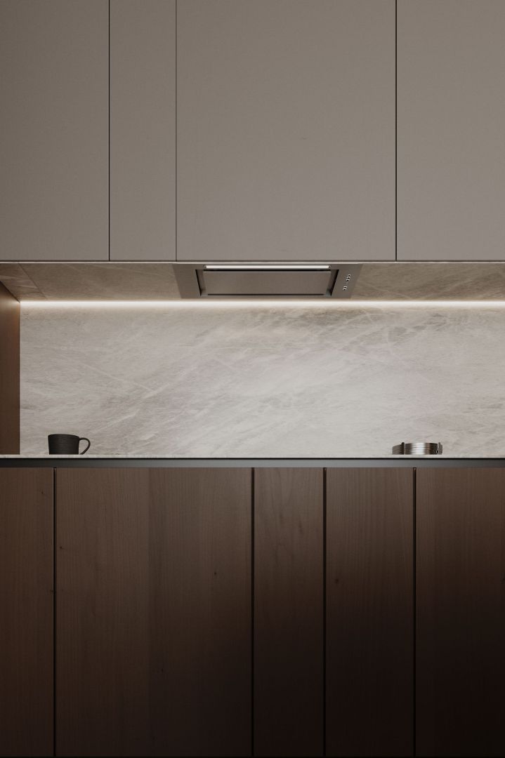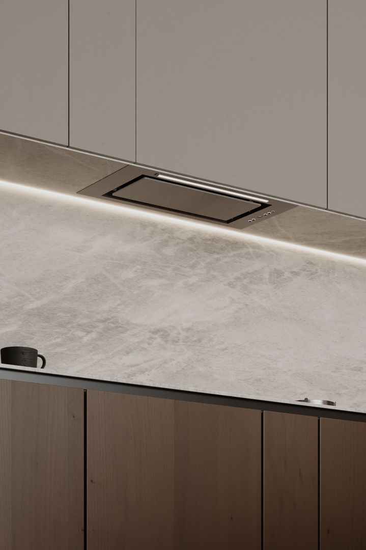 Tvaika nosūcēja izmēri lieliski iekļaujas virtuves mēbelēs, tāpēc vietu ap to var brīvi izmantot citām lietām. Atverot skapi, tiek atklāta skaista sadzīves tehnika. Viss no priekšējā paneļa līdz turbīnas korpusam ir izgatavots no nerūsējošā tērauda, estētiski vienkārši un skaisti. Tvaika nosūcēju ir ārkārtīgi viegli kopt. Viss, kas jums nepieciešams, ir mikrošķiedra ar INOX virsmas tīrīšanas līdzekli.